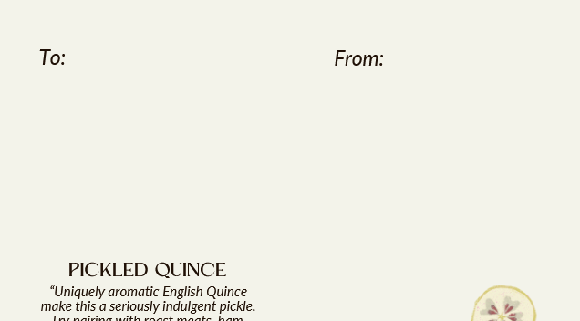 Uniquely aromatic English Quince make this a seriously indulgent pickle. Try pairing with roast meats, ham, cheese and terrine.